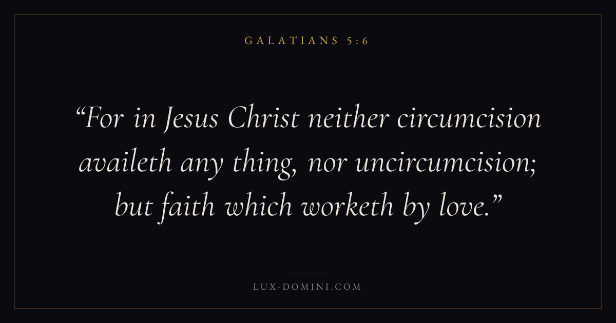 For in Jesus Christ neither circumcision availeth any thing, nor uncircumcision; but faith which worketh by love.