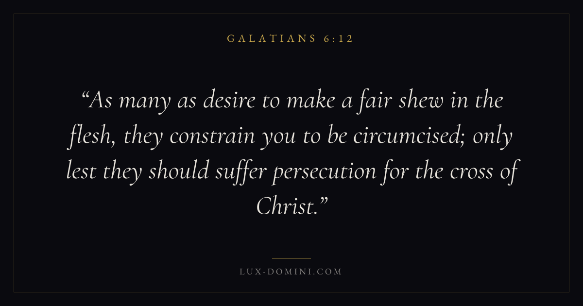 As many as desire to make a fair shew in the flesh, they constrain you to be circumcised; only lest they should suffer persecution for the cross of Christ.
