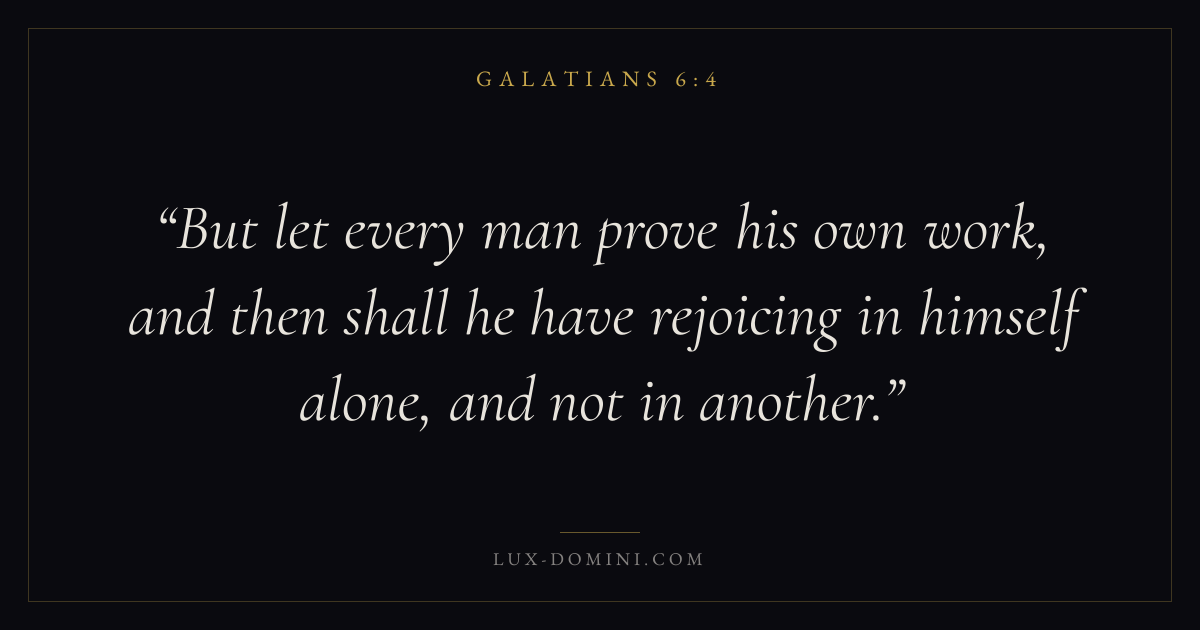 But let every man prove his own work, and then shall he have rejoicing in himself alone, and not in another.