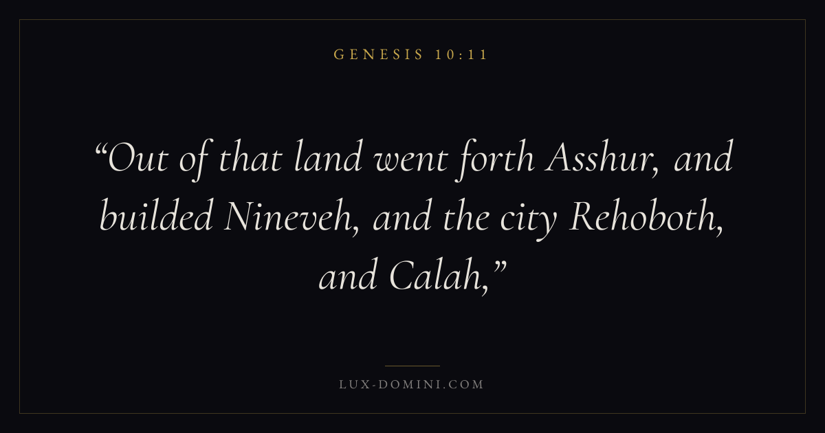 Out of that land went forth Asshur, and builded Nineveh, and the city Rehoboth, and Calah,