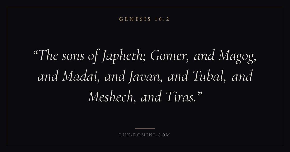 The sons of Japheth; Gomer, and Magog, and Madai, and Javan, and Tubal, and Meshech, and Tiras.