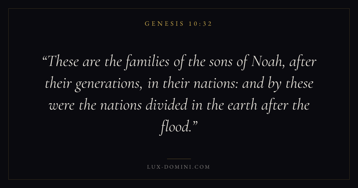 These are the families of the sons of Noah, after their generations, in their nations: and by these were the nations divided in the earth after the flood.
