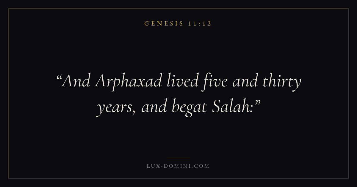 Son of Shem, born the year after the Deluge. He died at the age of 438 years ( Gen. 11:10-13 ; 1 Chr. 1:17 , 18; Luke 3:36 ).