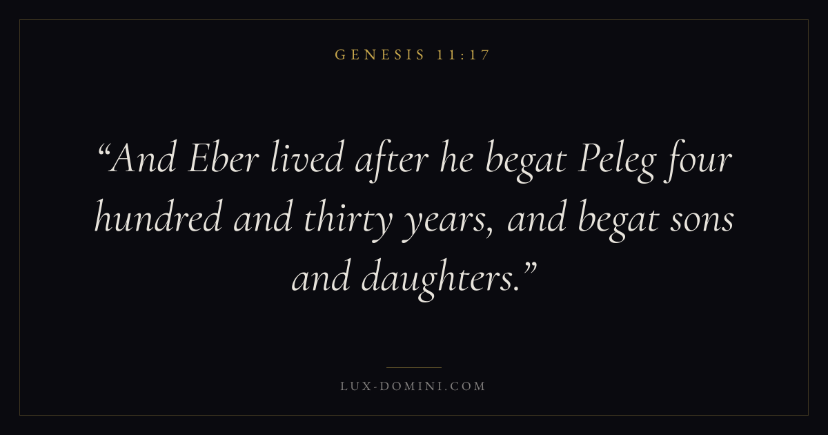 And Eber lived after he begat Peleg four hundred and thirty years, and begat sons and daughters.