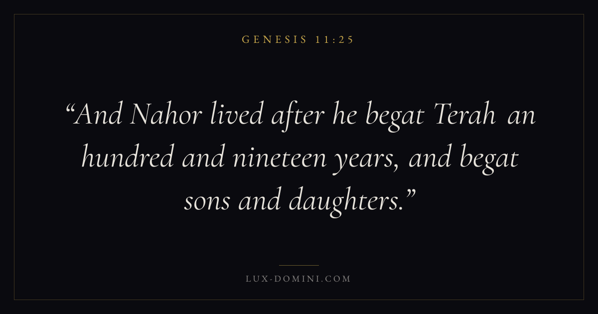 And Nahor lived after he begat Terah an hundred and nineteen years, and begat sons and daughters.