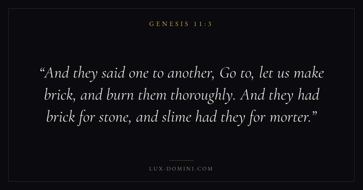 And they said one to another, Go to, let us make brick, and burn them thoroughly. And they had brick for stone, and slime had they for morter.