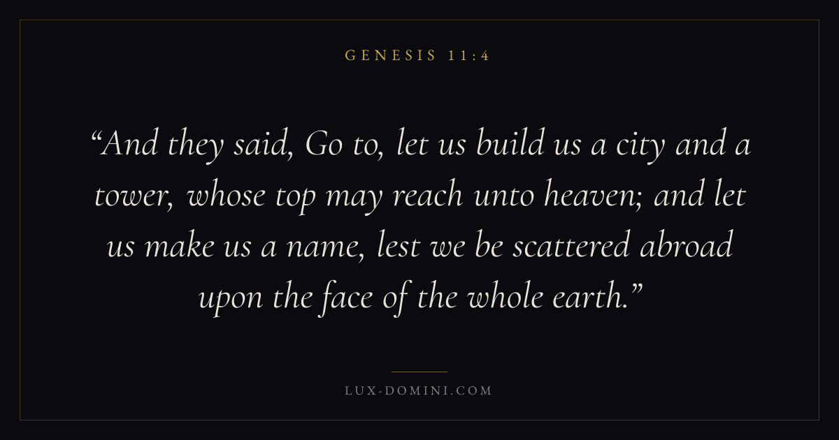 And they said, Go to, let us build us a city and a tower, whose top may reach unto heaven; and let us make us a name, lest we be scattered abroad upon the face of the whole earth.