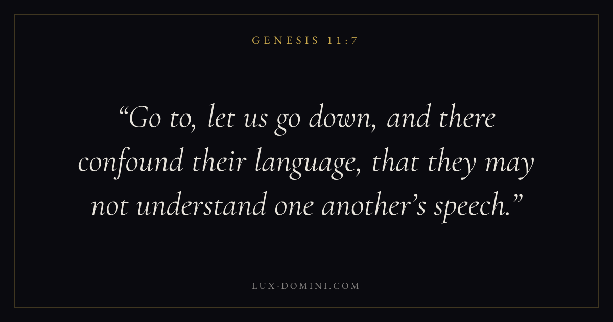Go to, let us go down, and there confound their language, that they may not understand one another’s speech.