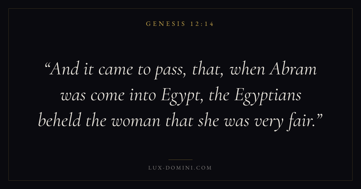 And it came to pass, that, when Abram was come into Egypt, the Egyptians beheld the woman that she was very fair.