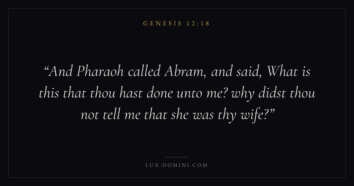 And Pharaoh called Abram, and said, What is this that thou hast done unto me? why didst thou not tell me that she was thy wife?