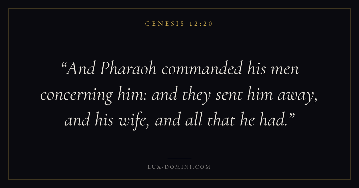 And Pharaoh commanded his men concerning him: and they sent him away, and his wife, and all that he had.