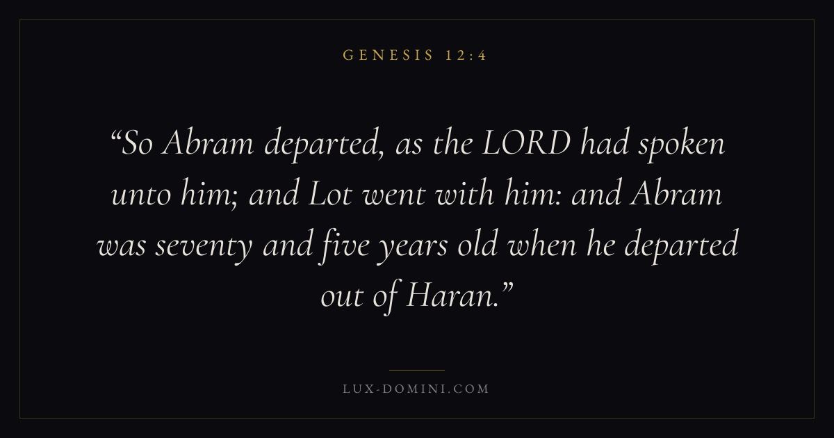 So Abram departed, as the LORD had spoken unto him; and Lot went with him: and Abram was seventy and five years old when he departed out of Haran.