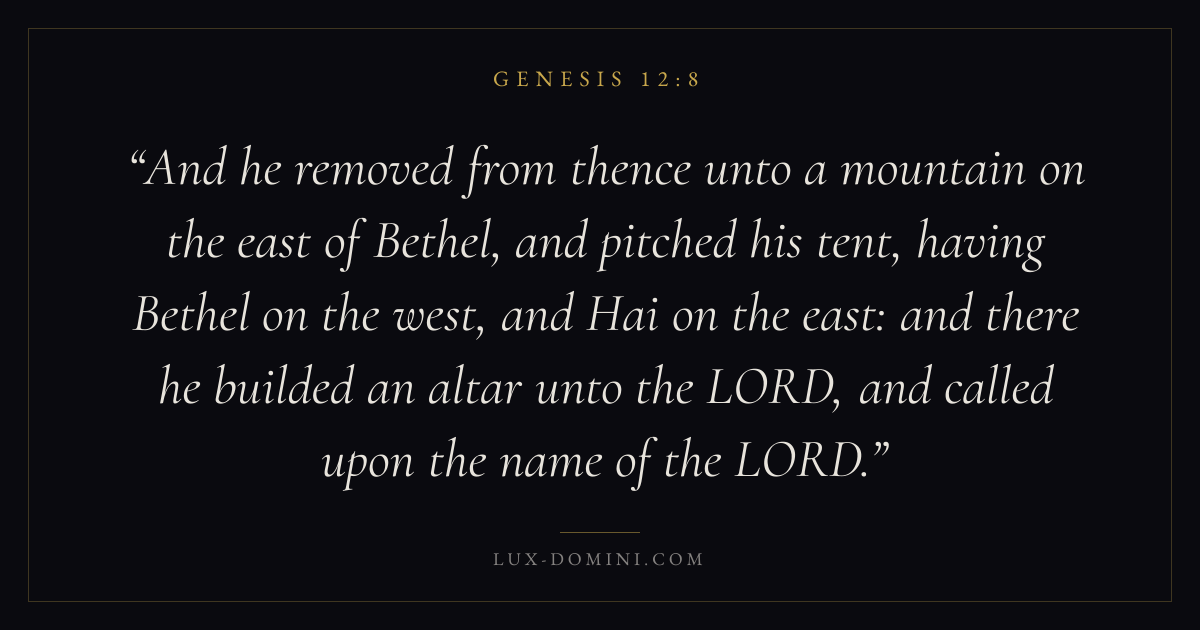 And he removed from thence unto a mountain on the east of Bethel, and pitched his tent, having Bethel on the west, and Hai on the east: and there he builded an altar unto the LORD, and called upon the name of the LORD.