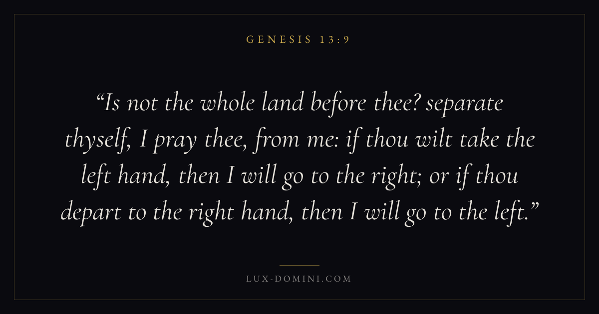 Is not the whole land before thee? separate thyself, I pray thee, from me: if thou wilt take the left hand, then I will go to the right; or if thou depart to the right hand, then I will go to the left.