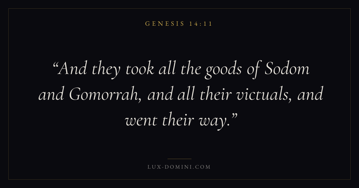 And they took all the goods of Sodom and Gomorrah, and all their victuals, and went their way.