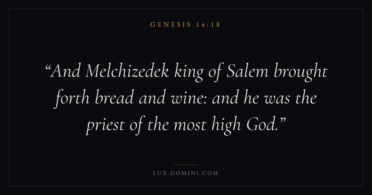 And Melchizedek king of Salem brought forth bread and wine: and he was the priest of the most high God.