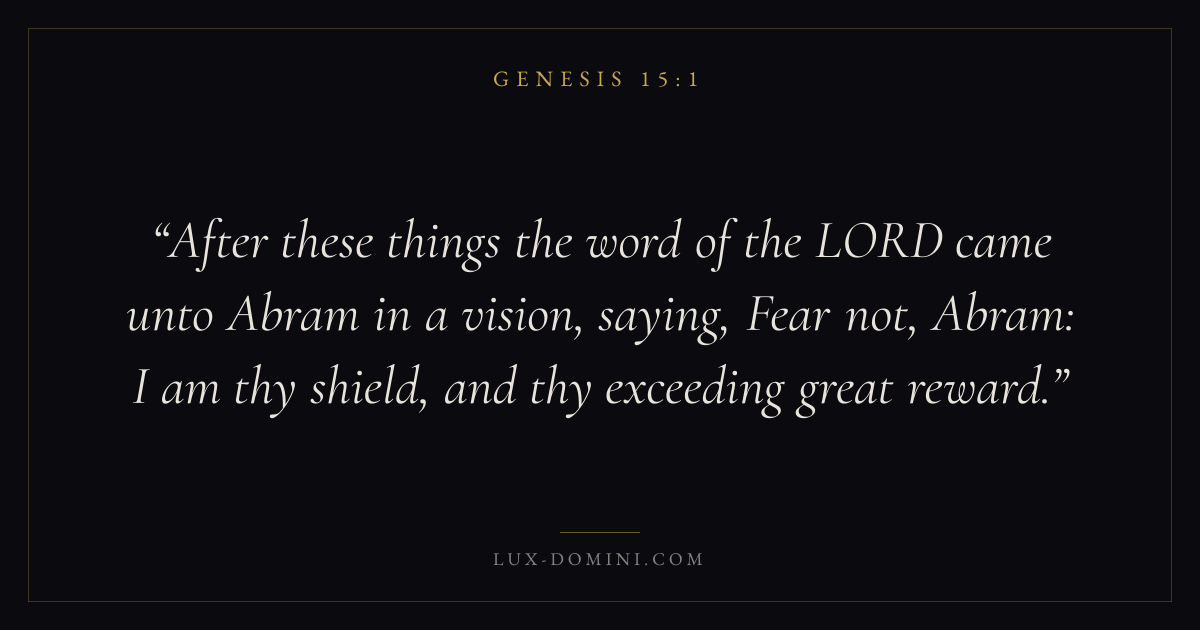 After these things the word of the LORD came unto Abram in a vision, saying, Fear not, Abram: I am thy shield, and thy exceeding great reward.