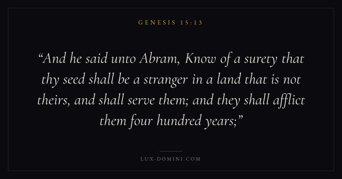 And he said unto Abram, Know of a surety that thy seed shall be a stranger in a land that is not theirs, and shall serve them; and they shall afflict them four hundred years;