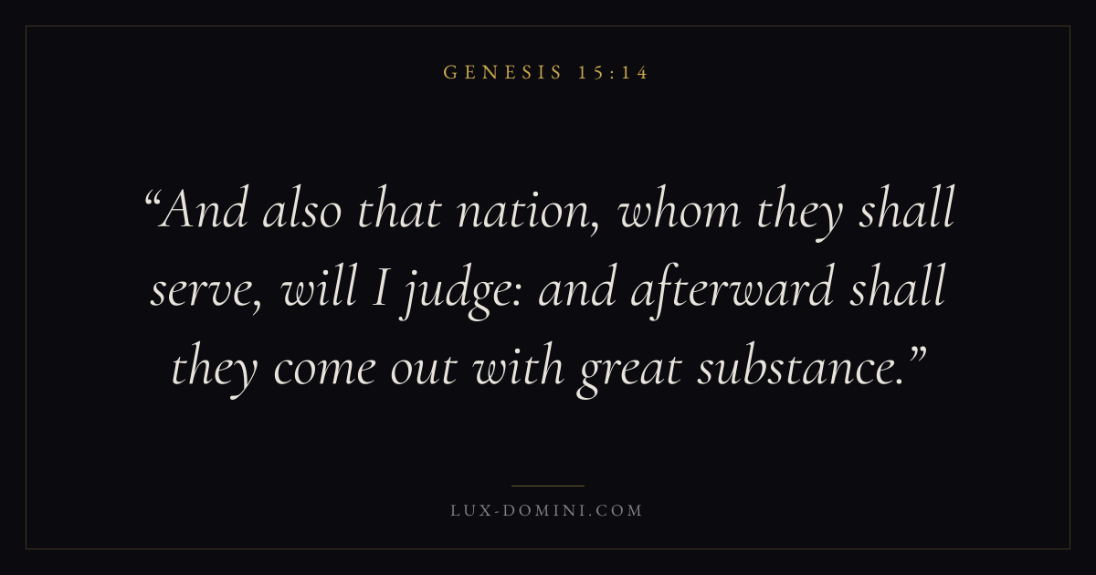 And also that nation, whom they shall serve, will I judge: and afterward shall they come out with great substance.