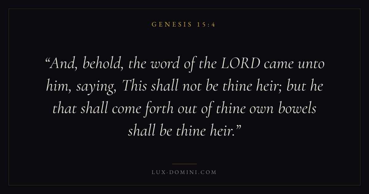 And, behold, the word of the LORD came unto him, saying, This shall not be thine heir; but he that shall come forth out of thine own bowels shall be thine heir.
