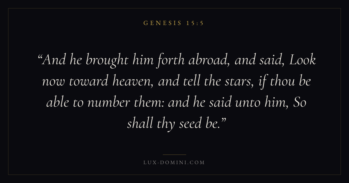 And he brought him forth abroad, and said, Look now toward heaven, and tell the stars, if thou be able to number them: and he said unto him, So shall thy seed be.