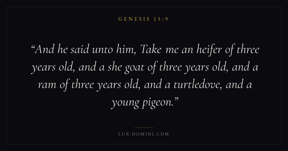 And he said unto him, Take me an heifer of three years old, and a she goat of three years old, and a ram of three years old, and a turtledove, and a young pigeon.