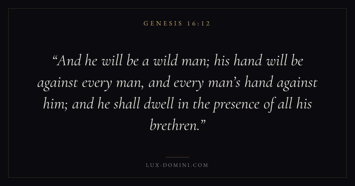 And he will be a wild man; his hand will be against every man, and every man’s hand against him; and he shall dwell in the presence of all his brethren.