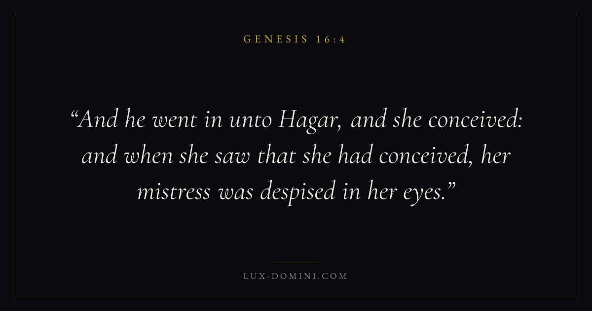 And he went in unto Hagar, and she conceived: and when she saw that she had conceived, her mistress was despised in her eyes.