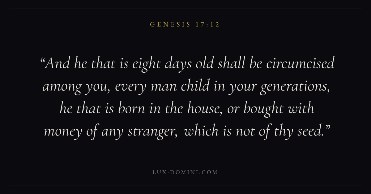 And he that is eight days old shall be circumcised among you, every man child in your generations, he that is born in the house, or bought with money of any stranger, which is not of thy seed.