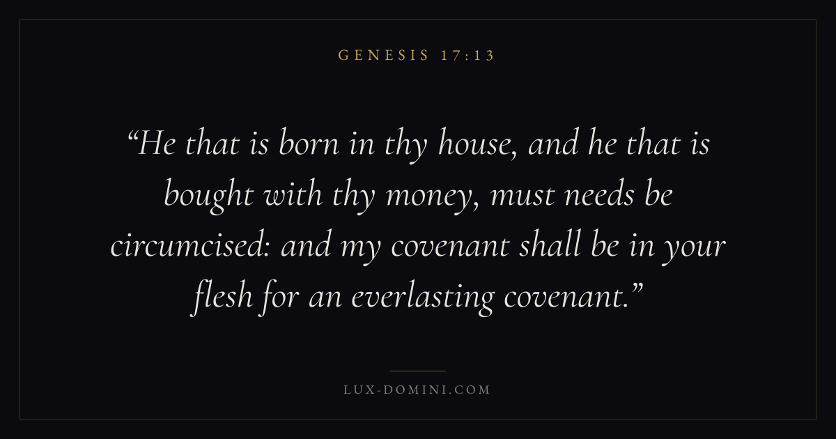 He that is born in thy house, and he that is bought with thy money, must needs be circumcised: and my covenant shall be in your flesh for an everlasting covenant.