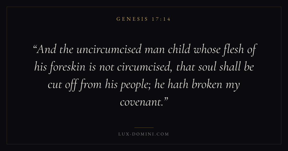 And the uncircumcised man child whose flesh of his foreskin is not circumcised, that soul shall be cut off from his people; he hath broken my covenant.