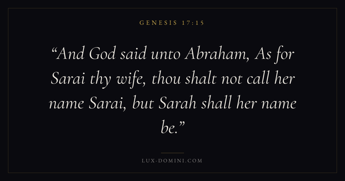 And God said unto Abraham, As for Sarai thy wife, thou shalt not call her name Sarai, but Sarah shall her name be.