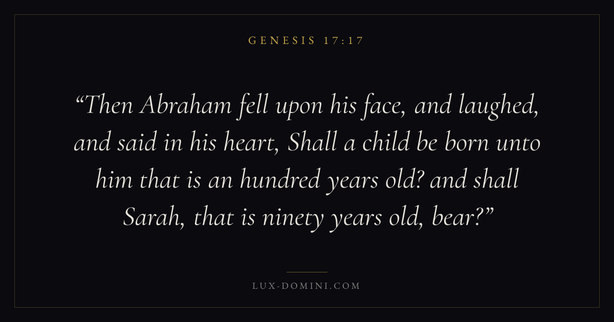 Then Abraham fell upon his face, and laughed, and said in his heart, Shall a child be born unto him that is an hundred years old? and shall Sarah, that is ninety years old, bear?