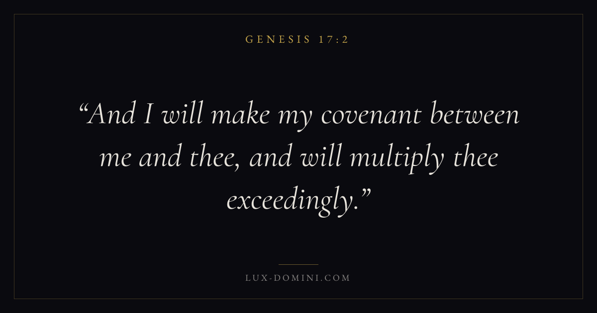 Books / Genesis / Chapter 17 / Verse 2 ← Genesis 17:1 Genesis 17:2 Genesis 17:3 → And I will make my covenant between me and thee, and will multiply thee exceedingly. Download verse card Share on Twitter Share on Facebook Pin it ✦ Key themes HopeCreationFallCovenant Read with Genesis 17:1Genesis 17:3Romans 8:24Revelation 21:4 Related topics Bible verses about hope ✦ Genesis Chapter 17 verses V. 1 V. 2 V. 3 V. 4 V. 5 V. 6 V. 7 V. 8 V. 9 V. 10 V. 11 V. 12 V. 13 V. 14 V. 15 V. 16 V. 17 V. 18 V. 19 V. 20 V. 21 V. 22 V. 23 V. 24 V. 25 V. 26 V. 27