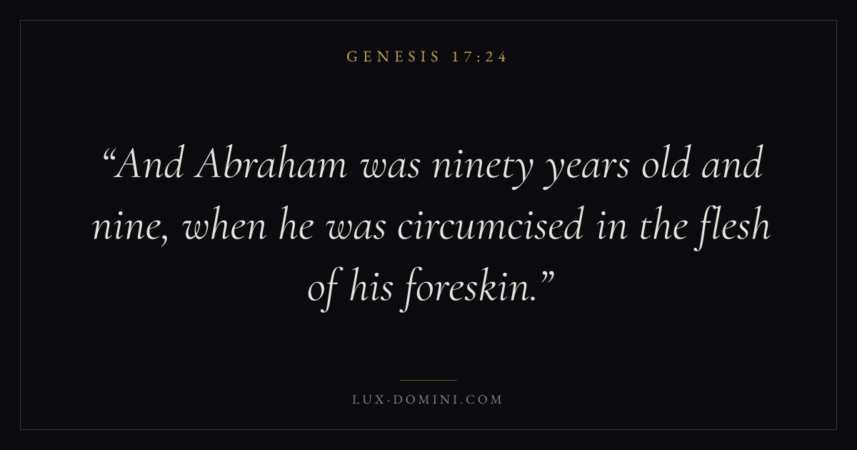And Abraham was ninety years old and nine, when he was circumcised in the flesh of his foreskin.