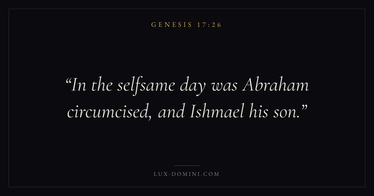 In the selfsame day was Abraham circumcised, and Ishmael his son.