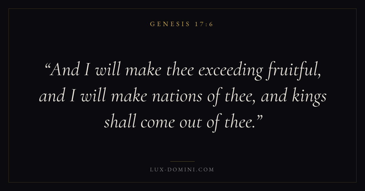 And I will make thee exceeding fruitful, and I will make nations of thee, and kings shall come out of thee.