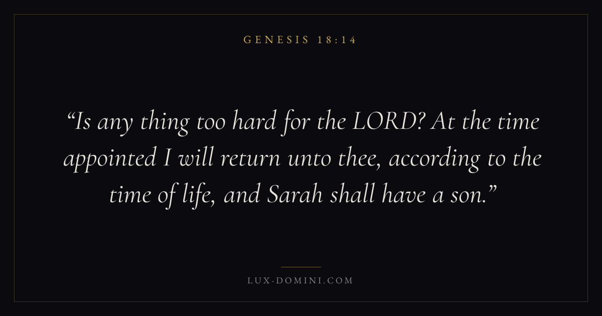 Is any thing too hard for the LORD? At the time appointed I will return unto thee, according to the time of life, and Sarah shall have a son.