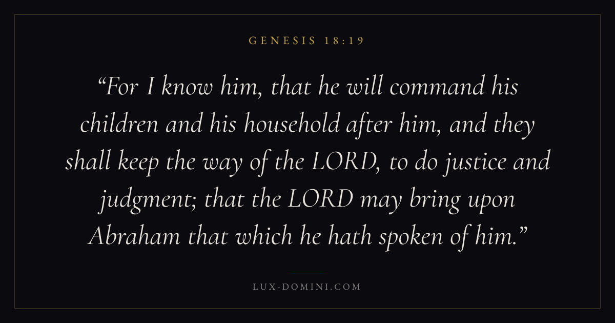 For I know him, that he will command his children and his household after him, and they shall keep the way of the LORD, to do justice and judgment; that the LORD may bring upon Abraham that which he hath spoken of him.
