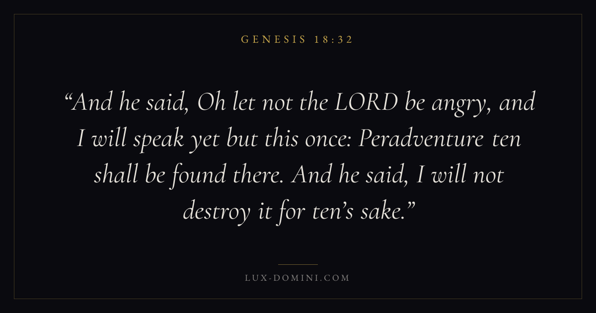 And he said, Oh let not the LORD be angry, and I will speak yet but this once: Peradventure ten shall be found there. And he said, I will not destroy it for ten’s sake.