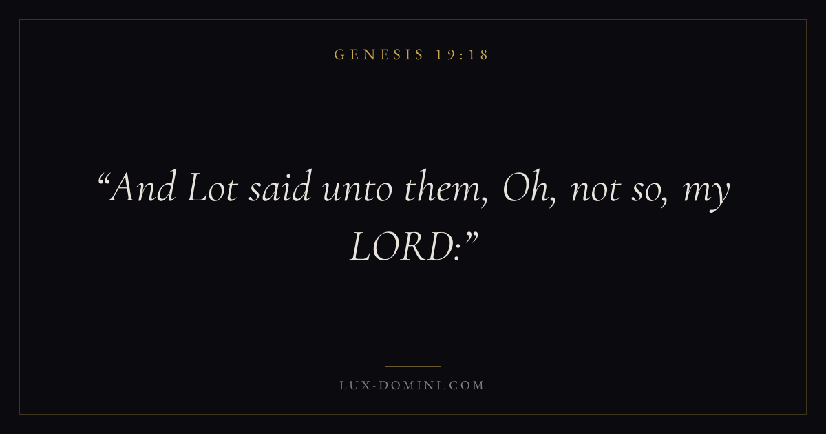 Books / Genesis / Chapter 19 / Verse 18 ← Genesis 19:17 Genesis 19:18 Genesis 19:19 → And Lot said unto them, Oh, not so, my LORD: Download verse card Share on Twitter Share on Facebook Pin it ✦ Key themes HopeCreationFallCovenant Read with Genesis 19:17Genesis 19:19Romans 8:24Revelation 21:4 Related topics Bible verses about hope ✦ Genesis Chapter 19 verses V. 1 V. 2 V. 3 V. 4 V. 5 V. 6 V. 7 V. 8 V. 9 V. 10 V. 11 V. 12 V. 13 V. 14 V. 15 V. 16 V. 17 V. 18 V. 19 V. 20 V. 21 V. 22 V. 23 V. 24 V. 25 V. 26 V. 27 V. 28 V. 29 V. 30 V. 31 V. 32 V. 33 V. 34 V. 35 V. 36 V. 37 V. 38
