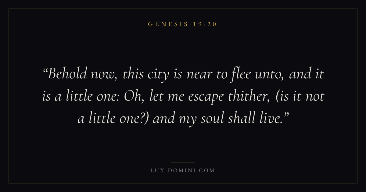 Behold now, this city is near to flee unto, and it is a little one: Oh, let me escape thither, (is it not a little one?) and my soul shall live.