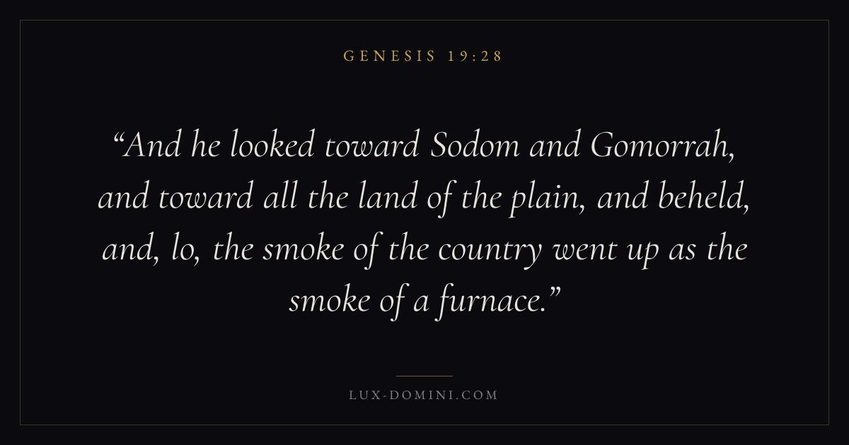 And he looked toward Sodom and Gomorrah, and toward all the land of the plain, and beheld, and, lo, the smoke of the country went up as the smoke of a furnace.