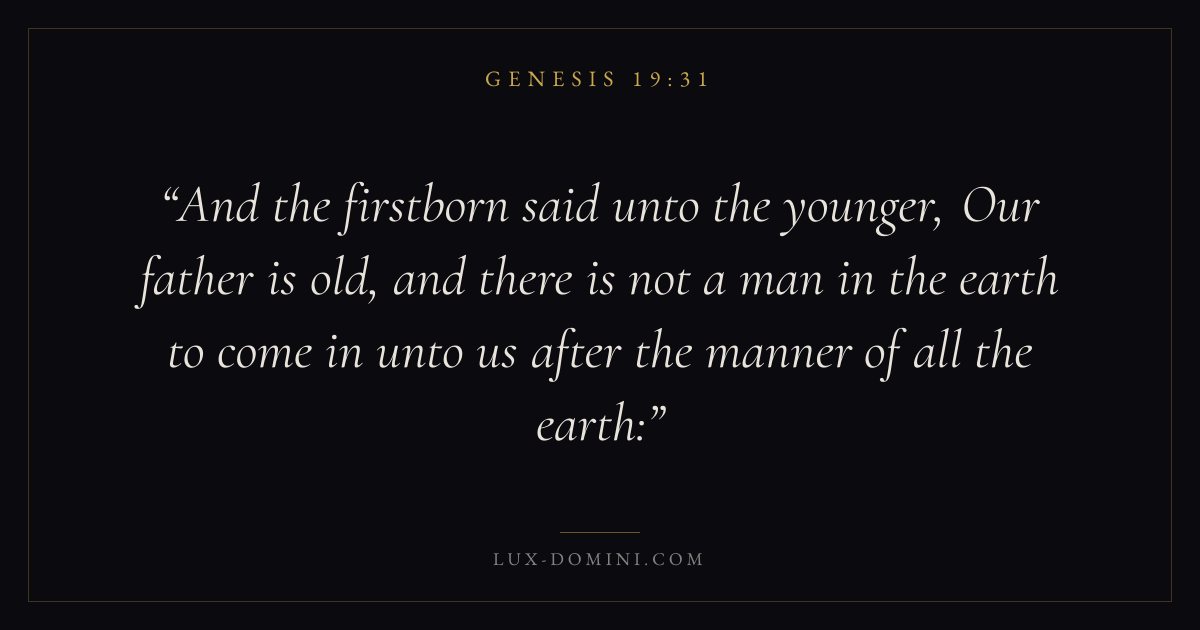 And the firstborn said unto the younger, Our father is old, and there is not a man in the earth to come in unto us after the manner of all the earth: