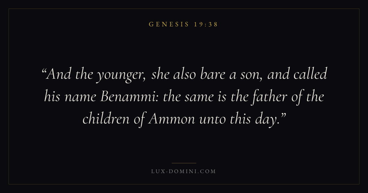 And the younger, she also bare a son, and called his name Benammi: the same is the father of the children of Ammon unto this day.