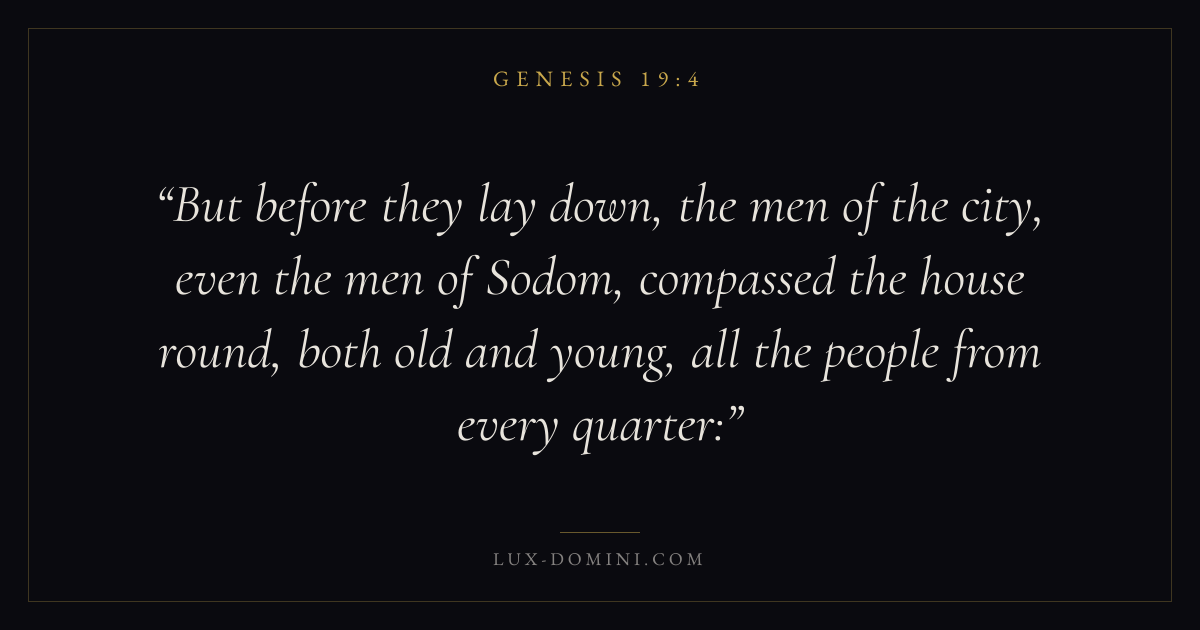 But before they lay down, the men of the city, even the men of Sodom, compassed the house round, both old and young, all the people from every quarter: