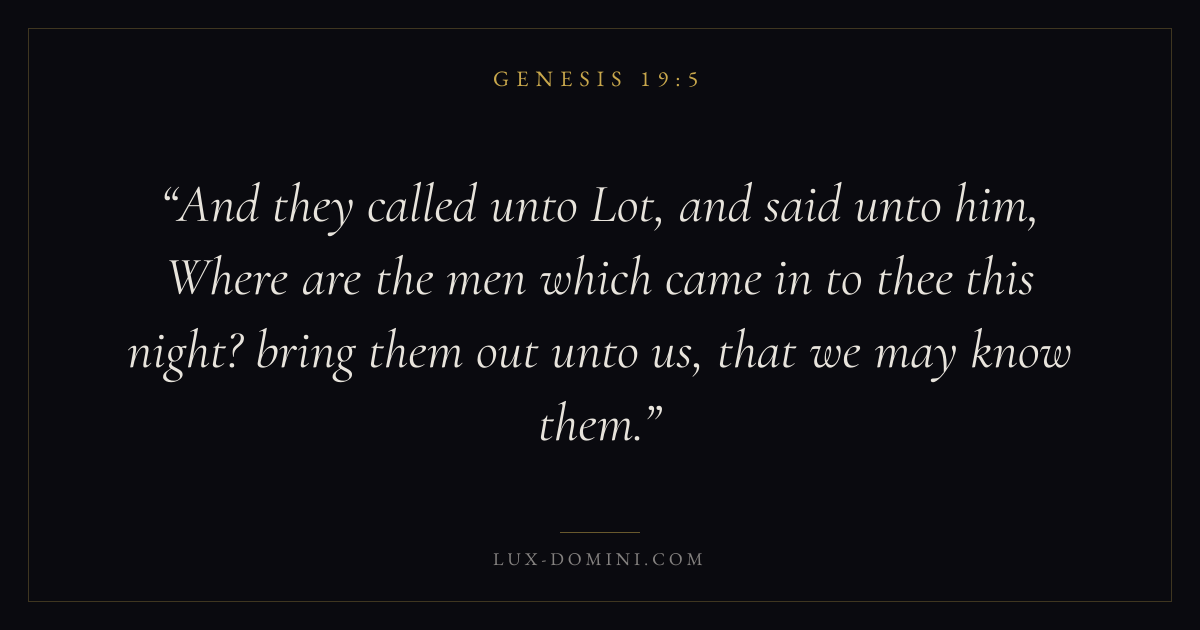 And they called unto Lot, and said unto him, Where are the men which came in to thee this night? bring them out unto us, that we may know them.