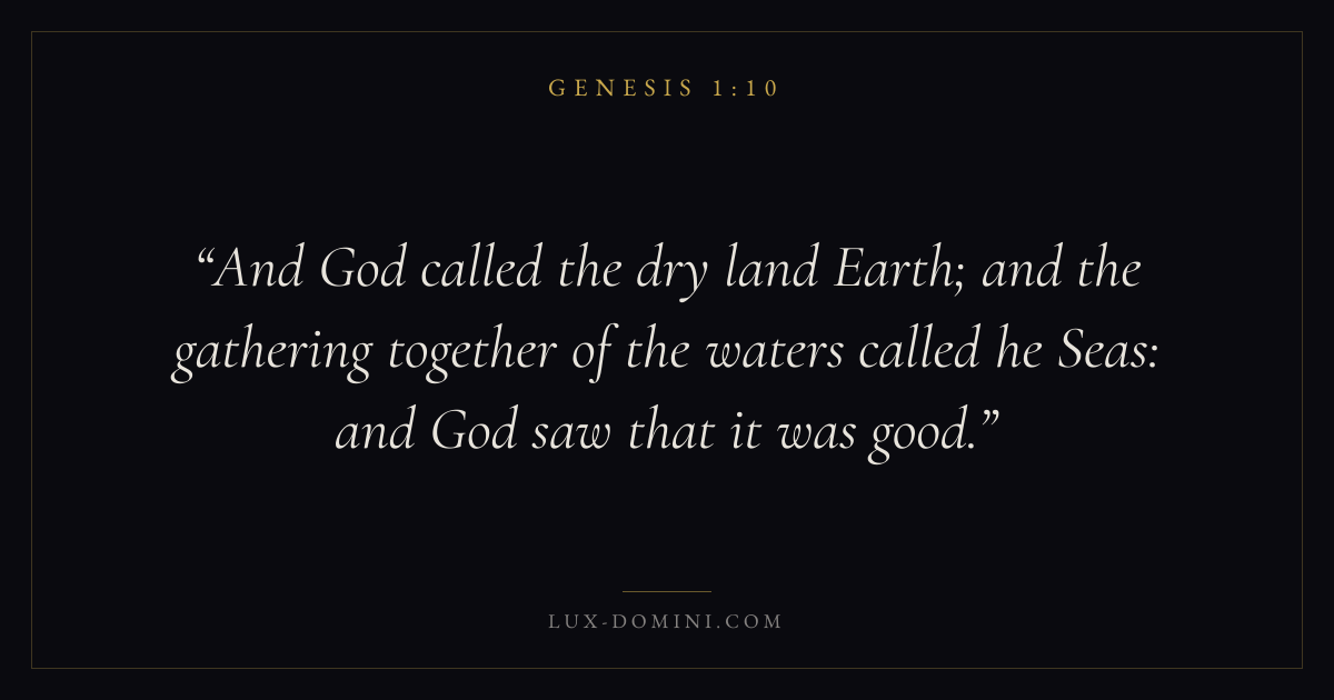 And God called the dry land Earth; and the gathering together of the waters called he Seas: and God saw that it was good.