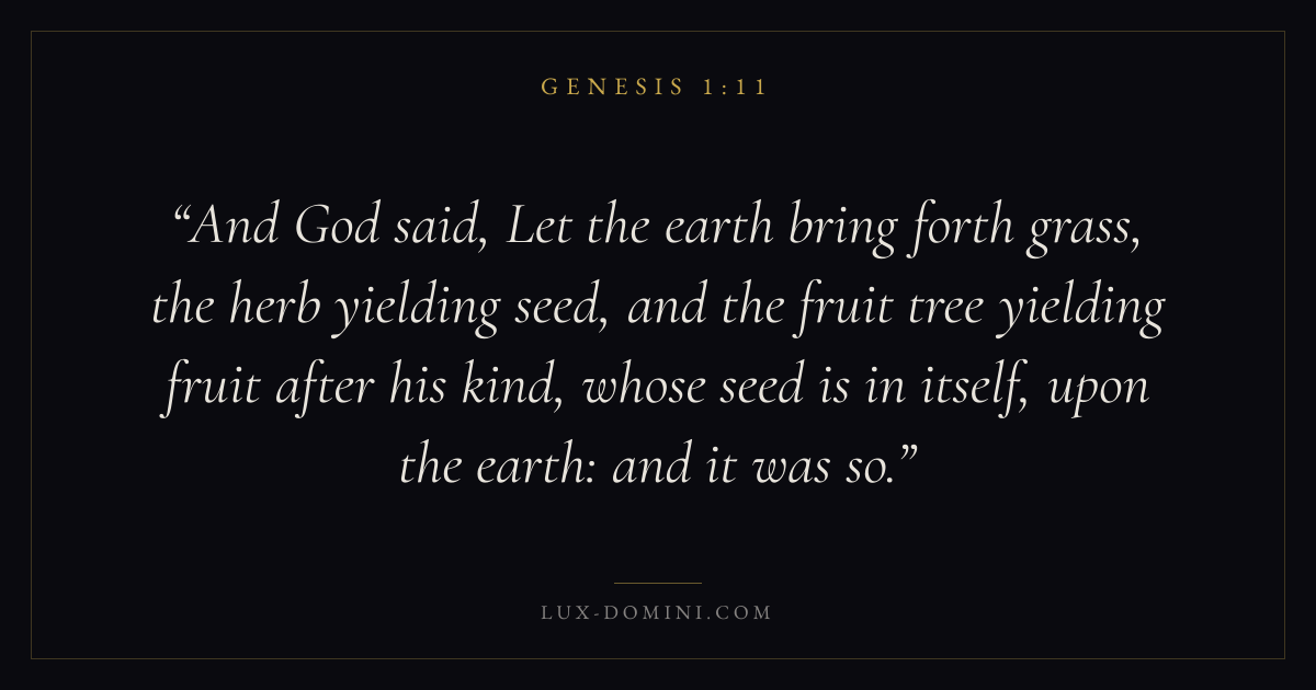 And God said, Let the earth bring forth grass, the herb yielding seed, and the fruit tree yielding fruit after his kind, whose seed is in itself, upon the earth: and it was so.