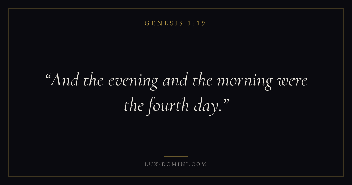 In the fourth day's work, the creation of the sun, moon, and stars is accounted for. All these are the works of God.